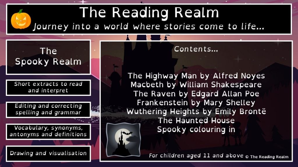 Download here: The Reading Realm Home Learning Pack Spooky Stories
