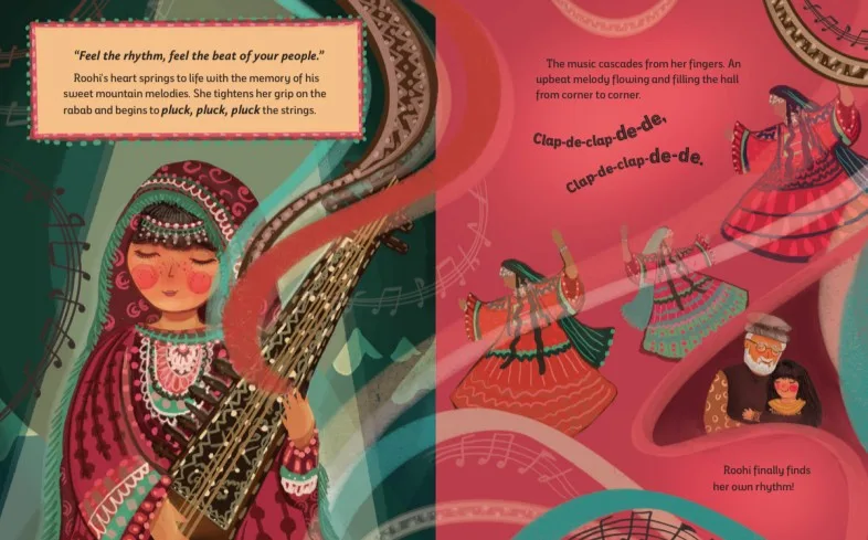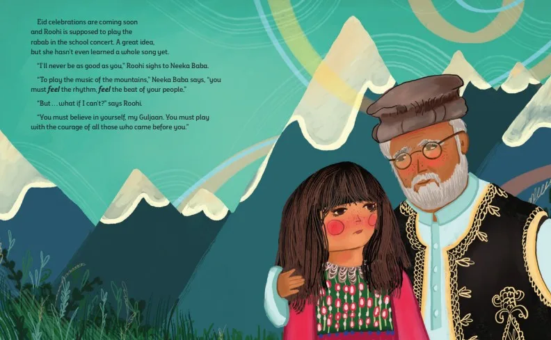 We have some great teacher/classroom discussion guides created for this book on the Barefoot Books website under my title. We hope students can explore new instruments such as the rabab and how rhythm and sounds are different across the music spectrum. Also how music is used in celebrations or festivals around the world in which discoveries of different cultures, traditional and geographical areas can be explored. I would love the SEL elements of the book to also be discussed in terms of how a child may feel under pressure, such as learning something new or performance anxiety.