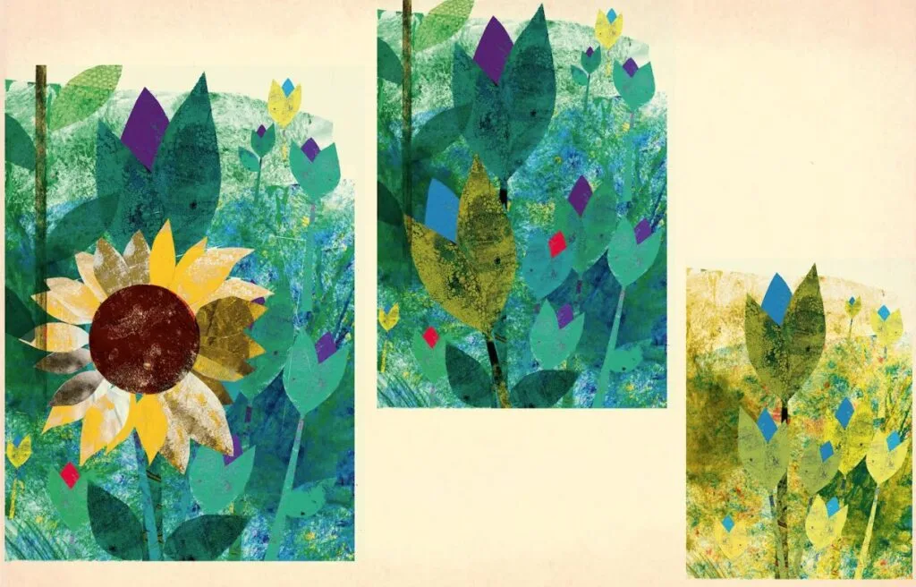 My illustrations are a mix of hand-printed textures (mainly oil paint on newsprint) and Photoshop to create a digital collage.