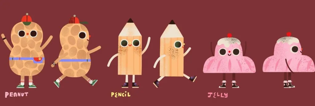 I had the idea that you, Pencil, should be the star of the story! Wouldn’t it be funny if you were writing the story yourself and casting your friends Jelly and Peanut to ‘act’ in it. You loved this idea. Together we thought about what would happen if Peanut and Jelly didn’t like the way the story was going and how they would react, which could be really funny. We put our characters through a lot in the story – in fact Jelly almost gets eaten at one point!